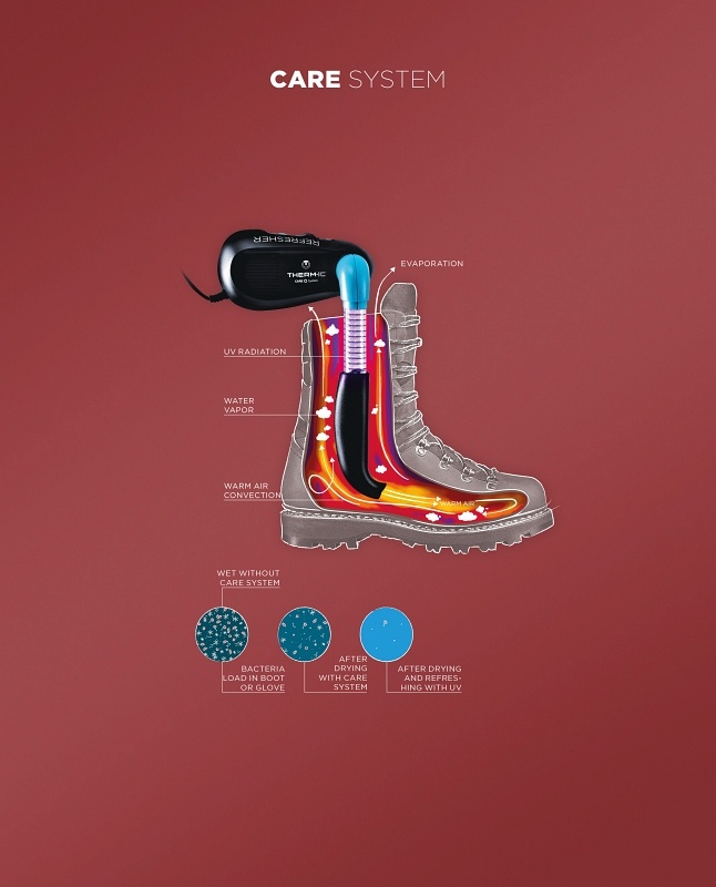 Zajímavým řešením je kompaktní model Therm-ic Refresher, který spojuje účinné proudění teplého vzduchu s dalšími funkcemi pro ještě vyšší hygienu. Disponuje časovačem na 1, 3 nebo 6 hodin, takže si můžete vysoušení nastavit podle potřeby. Kromě toho využívá i UV záření, které aktivně ničí bakterie a plísně, a tím brání vzniku zápachu. Výsledkem je nejen dokonale suchá, ale i hygienicky čistá obuv či rukavice.