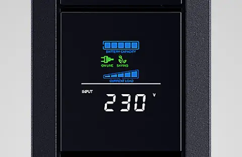 Příjemný designový prvek představuje integrovaný barevný LCD displej, který poskytuje přehledné informace o stavu napájení, baterii, zátěži, vstupním napětí a frekvenci. Panel s LCD je naklápěcí, což usnadňuje čtení zobrazených informací z různých úhlů. Pod tímto panelem jsou pak umístěny porty USB-A a USB-C. Na zadní straně přístroje se nachází šest zásuvek s přepěťovou ochranou, zásuvka pro přívodní kabel, USB-B port, dva síťové porty (IN a OUT), sériový port a resetovací tlačítko. Další významnou funkcí je ochrana datové linky s rychlostí přenosu až 1 Gb/s, jež chrání komunikační zařízení před přepětím a špičkami.