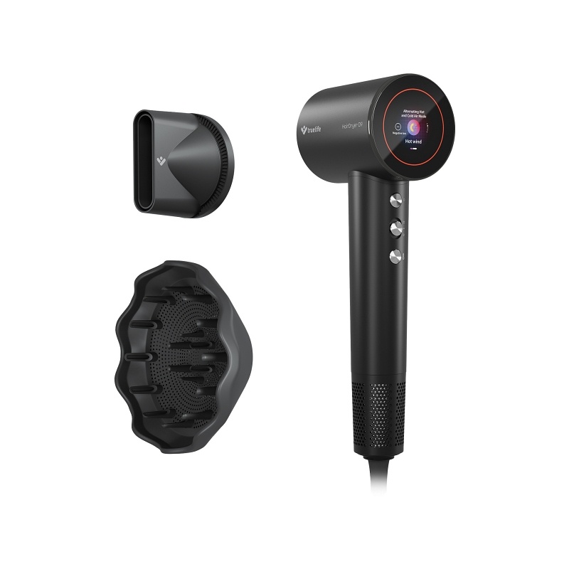 Skutečným překvapením testu se stal model Truelife HairDryer D9. Tento fén nabízí pět režimů, včetně jemného nastavení vhodného pro dětské vlasy. Aktuálně zvolený mód i další funkce je pak možné sledovat na přehledném barevném LED displeji. Motor přístroje dosahuje až 110 000 otáček za minutu a díky ionizátoru Truelife UltraIonic si můžete rychle vytvořit perfektní účes i při nižší teplotě, takže vlasy zůstávají zdravé, silné a bez poškození tepelným stylingem. Volit lze tři teplotní a dvě rychlostní úrovně. Fén pracuje velmi tiše, je vybaven dvěma magnetickými nástavci a údržbu usnadňuje praktický magnetický prachový filtr. To vše za cenu kolem tří tisíc korun.